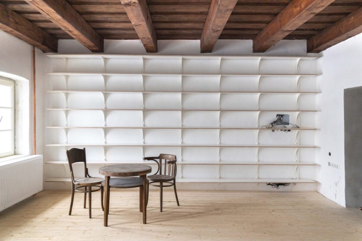 Zavesená knižnica a veľké dvere
